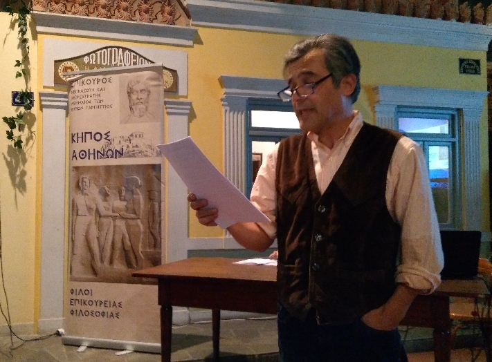 -Φίλοι της Επικούρειας Φιλοσοφίας από την Ελλάδα: εκ μέρους του Κήπου Θεσσαλονίκης ο Αντώνης Μπιλίσης, εκ μέρους του Κήπου Χαλκίδας ο Μηνάς Πατσουράκης και εκ μέρους του Κήπου Τρικάλων ο Αριστοτέλης Κερασοβίτης. Χαιρετισμό στον Κήπο Αθηνών απεύθυναν Φίλοι της Επικούρειας Φιλοσοφίας από τον υπόλοιπο κόσμο: εκ μέρους της Διεθνούς Εταιρείας των Φίλων του Επίκουρου ο Χιράμ Κρέσπο και ο a Αμερικανός Διαχειριστής της ιστοσελίδας Newepicurean.com.